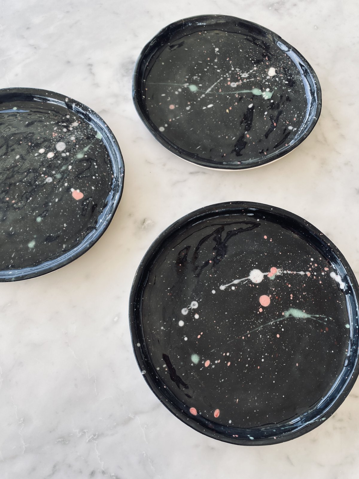 Assiette en céramique noire, verte et rose – Collection Cosmos – Petite assiette dessert & petit-déjeuner