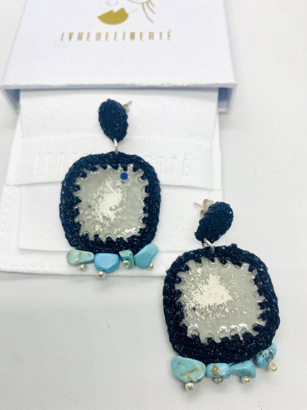 Les boucles d'oreille Ivre de Liberté sont livrées dans une boîte élégante et une pochette protectrice pour les offrir, les transporter ou les ranger en toute sérénité.