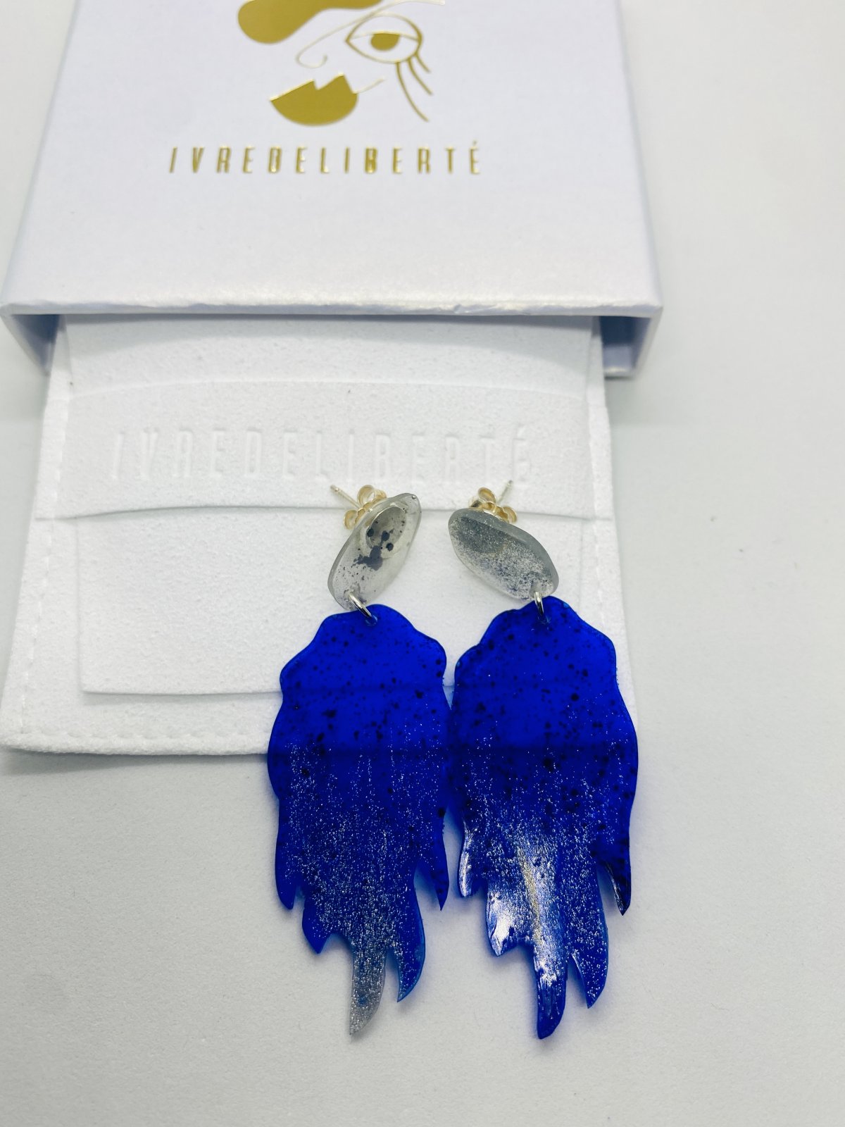 Les boucles d'oreille Ivre de Liberté sont livrées dans une boîte élégante et une pochette protectrice pour les offrir, les transporter ou les ranger en toute sérénité.
